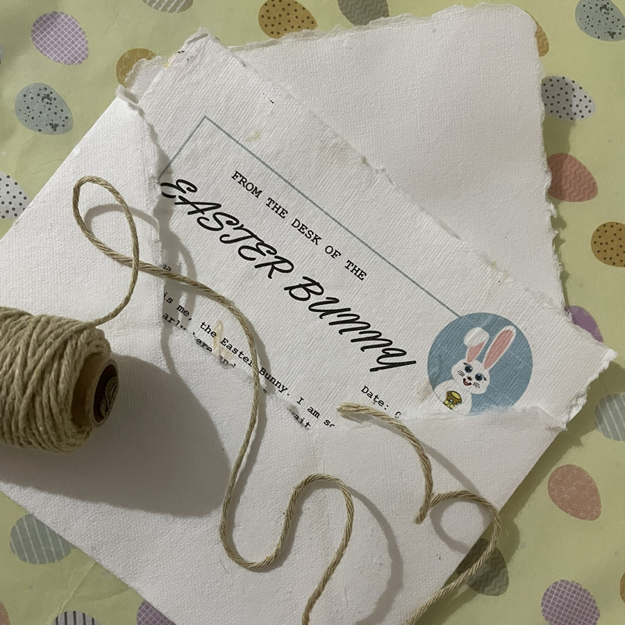 Personalised letter from The Easter Bunny on handmade paper with matching envelope.
