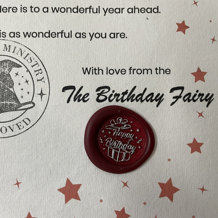 Handmade by the Magical Birthdays Dept with approved ink stamp and authentic wax seal.