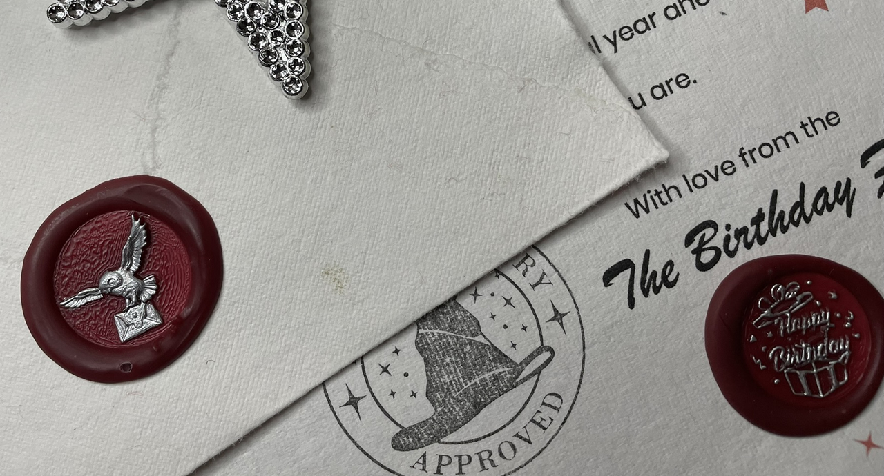 You also have the option to add a birthday card for your special person to accompany the letter with official stamp and genuine wax seal.